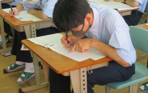 本日は、授業の様子を写真にて紹介します。1・2限目、J1生は硬筆をしていました。毛筆同様、正しい姿勢を意識して取り組んでいました。 明日から秋季中体連が行われます。中体連に参加する部活動生のみなさん、全力で頑張ってき