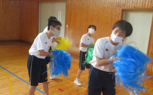 本日、体育大会の予行練習を行いました。本番のプログラム通りに練習を行い立ち位置等の確認を行いました。 各学年の団技を実際に行ってみました。全員で協力をして競技を行っていました。本番の結果が楽しみです! 体育大会の役員