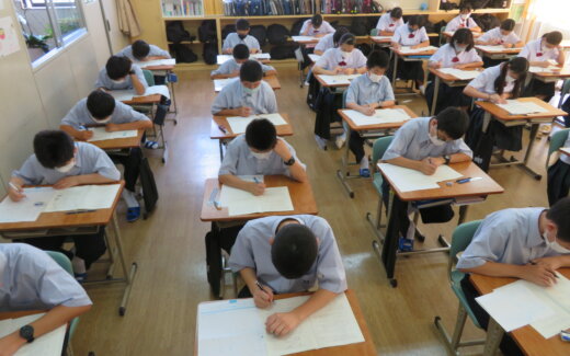 今日はJ1・J2生が中高一貫模試を受験しました。日々の授業や家庭学習の成果が出せたでしょうか。 休み時間は友人と解答の確認をしている生徒や次の教科の最終確認をしている生徒がいました。 結果が気になるところでしょうが