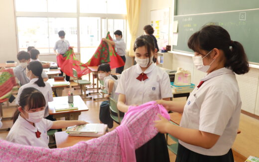 今日も集中して授業を受ける姿がありました。1年生は2学期から習熟度に分かれた授業が始まり、習熟度に合った授業展開がされています。2、3年生もそれぞれの習熟度で集中して授業を受けています。 2年生の家庭科の授業では衣服