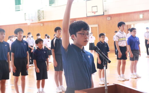 本日は、1学期終業式です。 体育館に移動して、全校集会の形で式に臨みます。 最初に表彰式が行われました。川﨑基宏校長先生から賞状を受け取りました。 表彰式後は、川﨑校長先生の講話です。「夏休み期間中、なにか一つ成し遂げ