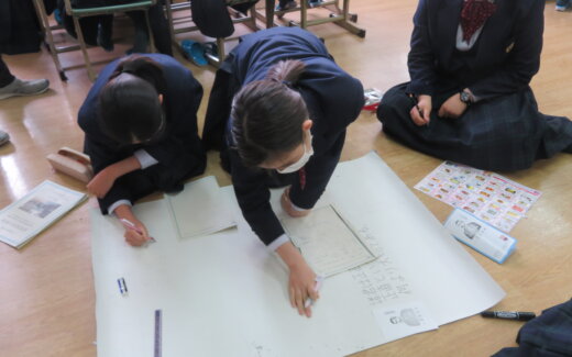 本日J2生の総合学習は昨日行った飫肥への校外学習のまとめ学習を行いました。ガイドボランティアの方から聞いたお話しや、自分たちで見て感じたことを班でまとめました。 分かりやすく伝えるために絵を描いたり、写真を貼った