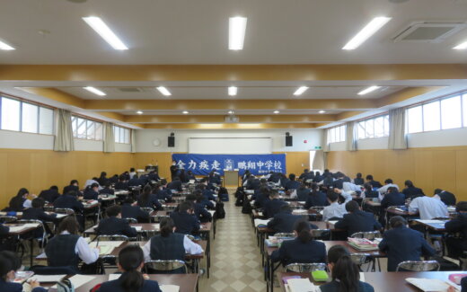 本日、鵬翔中学校第19期生の入学式が行われました。真新しい制服が、これからの鵬翔での生活で思い出に残る良い色になることを強く願います。 入学式では、ご来賓の方々をはじめ多くの方々よりお祝い・歓迎の言葉をいただきました
