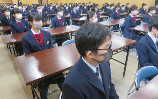 本日、令和2年度修了式が行われました。 川﨑校長先生の講話をはじめ、吉田教頭先生、安田先生、宮﨑先生よりお話がありました。 修了式後は、明日実施します新入生登校日の準備設営を行いました。説明会会場は、前回と同様多目