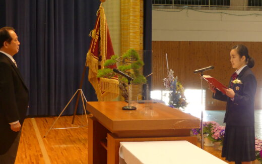 本日、鵬翔中学校第16期生の修了証書授与式を行いました。 昨日の雨模様から一転し、修了生を祝福する温かな日差しがこぼれる快晴の中の式典です。 式の様子を写真にて紹介します。 【修了証書授与】 【在校生送辞】 【修了生
