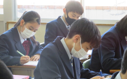 本日は、J1の授業の様子をお届けします。 現在英語は、未来の表現方法について学習しています。数学は、1次関数の単元をしています。 まだまだ寒い日が続きます。体調管理に気をつけて、明日も元気に登校してきてください!