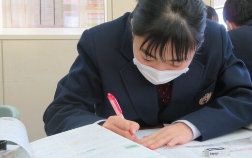 本日、3・4限目は総合の時間です。J2B教室をのぞいてみると、3月2日(火)から実施します第5回定期考査の予想問題をクラス全員で考えていました。 J3B教室をのぞいてみると、大学の学部学科調べをしていました。 明日
