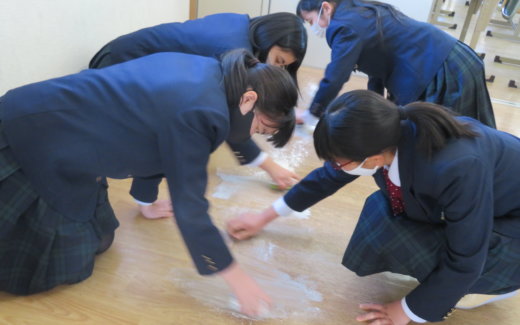 昼食後は全校生徒で清掃に取り組みます。各教室や廊下、中庭など校舎内を毎日清掃します。 清掃場所ごとにみんなで協力しながら清掃していました。明日は各種委員会が行われます。委員会活動もしっかりと行っていきましょう。