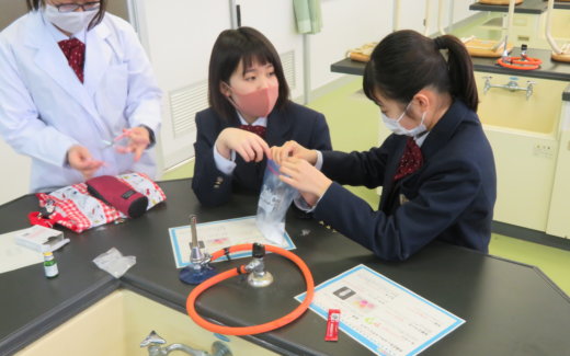 今日は、J1の授業の様子をお届けします。J1の技術の授業では、問題を解きながら、実際に道具をみて確認をしていました。 理科は、化学分野をしています。 明日は、新入生登校日となっています。説明会会場は、多目的ホールで
