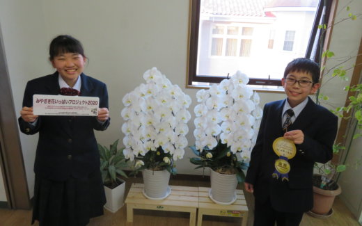 今日、学校に「みやざき花いっぱいプロジェクト2020」の取組みで胡蝶蘭が届きました!「お家deお花見」というコンセプトのもと実施されている取り組みのようです。 事務室前と中学棟2階に飾られています。学校が華やかになり