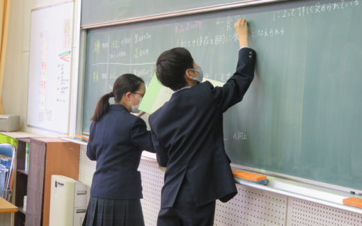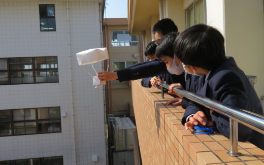 今日は、J2ーBが行ったエッグドロップ(高いところから卵を落としても割れない入れ物を作る)実験の様子をお届けします。班ごとに話し合い、卵が割れない工夫を考えました。 見事成功しました!今日行われた立志式の様子は後日お