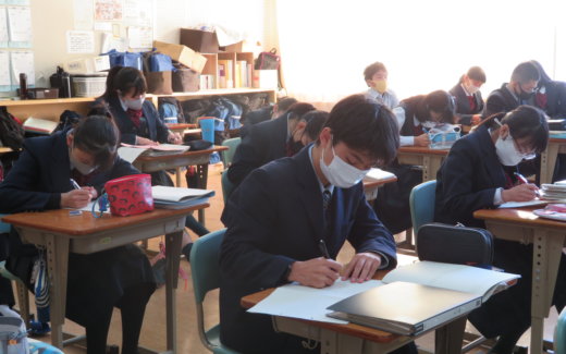 今日はとても寒い1日でした。寒いですが、授業中もドア・窓を開け換気をしています。 3年生ともなると、相当数の歌を覚えています。百人一首大会まで残り3日。百人の素晴らしい歌。古典学習の材として、ぜひ覚えて大会に臨んでく