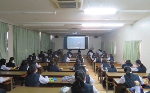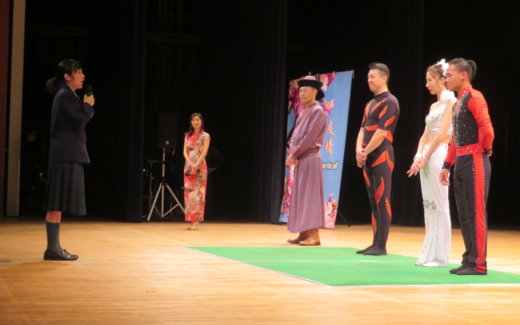 今日は芸術鑑賞会がありました。中学生は全員で市民文化ホールまで歩いて行きました。長い距離でしたが、友だちと話をしながら楽しそうに歩いていました。今年は中国文化芸術を鑑賞しました。 お礼の言葉をJ3A中村百花さん(加納