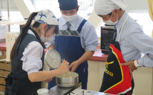本日、J1Aの調理実習が行われました。メニューは「鮭のムニエル・こふき芋・スープ」でした。グループで協力して野菜を切ったり魚を焼いたりしていました。 完成したものを担任・副担任の先生の下へ届けてくれました。おいしくい