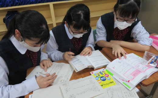 放課後の教室をのぞいてみると、教科担任の先生に質問している生徒、友人同士で教え合う生徒の姿が多く見られました。放課後学習も、静かな環境の中、集中して学習していました。 わからない問題や疑問に思ったことは、先生やHOS