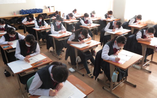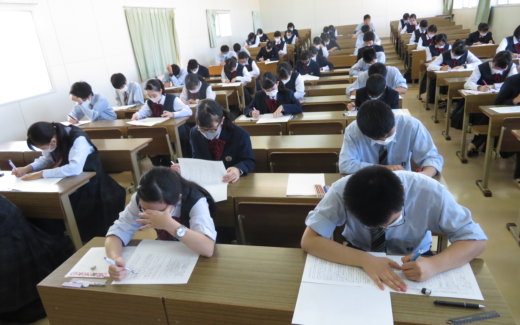 本日、特進英数科の特待生チャレンジテストが行われました。本校でも、J3生が同じ時間に受験をしました。定期考査とは違い、範囲の広いテストではありましたが、全員が精一杯取り組んでいました。 また、J1・J2生は通常授業が行わ