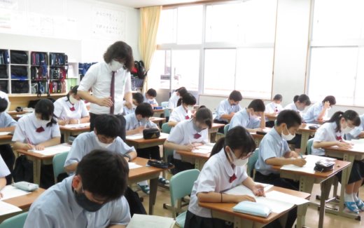 今日は、授業の様子をお届けします。 J1の国語の授業では、7月14日(火)から行われる定期考査にむけて、漢字テストが行われました。 休み時間や放課後の時間も、先生や友人に質問したり、黙々と学習する姿が見られます。7