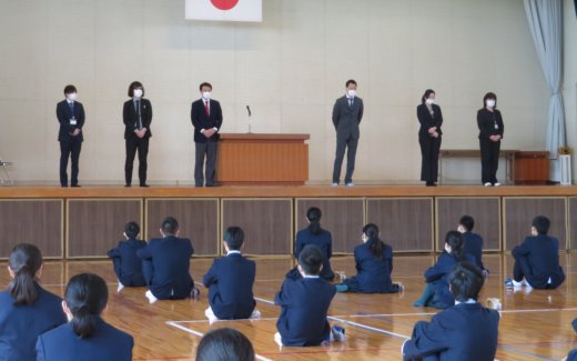 本日、新年度始業式が行われました。久しぶりに生徒たちの元気な姿が見れて嬉しかったです。 校長先生をはじめ、多くの先生方から激励をいただきました。 3つの密に気を配りながら、職員一同、生徒たちが安心して学校生活を送れ