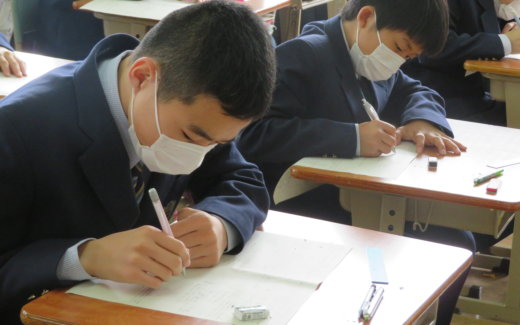 今日は久しぶりの登校日でした。1限目から3限目までは総復習テストが行われました。ギリギリまで確認をしながら頑張っていました! 4限目からは授業を行いました。国語、数学、英語の授業を各学年、頑張っていました! 最後は離任式