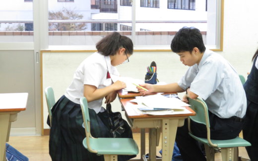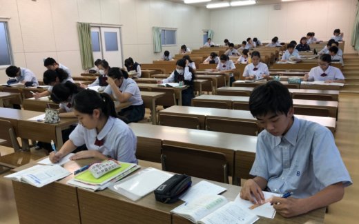 毎日元気に頑張っている鵬翔中生。今日も朝課外から、HOSHOサポートまで全力で取り組んでいました。 J3生は英語の授業で、高校生の内容に取り組んでいます。長文読解など単語の意味を調べながら、1時間1時間取り組んでいます。