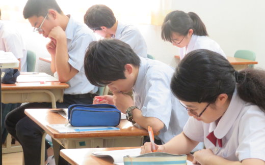 本校では、J3で高1の学習内容に入っています。数学では、数Ⅰの授業が始まり、習熟度に分かれて、様々な問題に取り組んでいます。現在、2次関数の単元を学習しているところです。中学の学習でも苦手意識を持つ生徒が多い単元ですが、