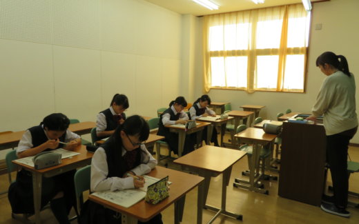 英会話の授業も習熟度に分かれて行われています。英語だけの授業に戸惑うこともありますが、友達と話をしながら、一生懸命取り組んでいます。 第1回実用英語技能検定試験(1次)も6月2日(日)に行われます。受験をする皆さんは合格