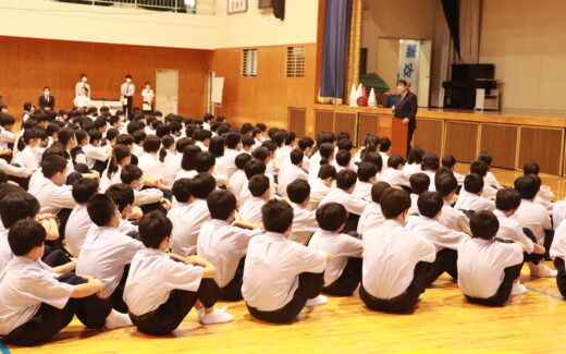 本日、中高一貫集会を行いました。J1生から高校3年生までが体育館に集まりました。教頭先生をはじめ、先生方からお話をしていただきました。 また、教育実習中の3名の中高一貫第12期生の先生にも在校生に向けてエールを送って