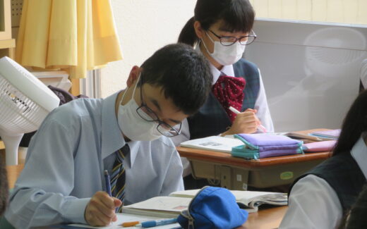 第1回定期考査2日前です。J1の数学では、テスト対策が行われていました。休み時間や放課後の時間には、先生に質問に行く姿も見られました。 J1生にとっては、初めての定期考査になります。テスト範囲をしっかり確認し、十分に