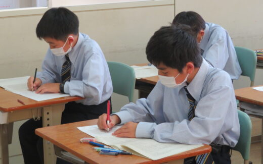 本日、第1回定期考査2日目です。 休み時間は、黙々と自分でまとめたノートを確認する姿や、時間ぎりぎりまで友人同士で問題を出し合ったりする姿が各クラスで見られました。 明日が最終日です。学習した成果を発揮できるよう、最