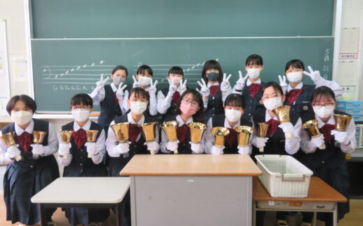 本日は、ハンドベル練習の様子を紹介します。J3生とJ2生の合同チームです!J2生は、この練習が初めてになります。 J3生が、J2生にハンドベルの持ち方や鳴らし方など教えて、一緒に楽しく練習をしていました。 6月5
