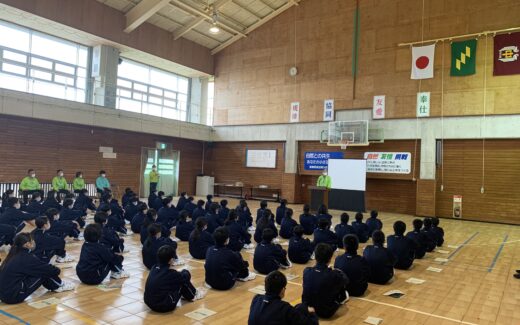 鵬翔中学校の令和4年度が始まりました。始業式では校長先生のお話、新担任・副担任の紹介等が行われました。 校長先生から「学校はよい習慣を身に付ける場」「心が変われば態度が変わる。態度が変われば行動が変わる。行動が変われば習
