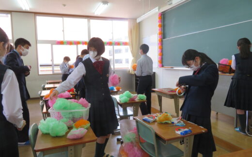 本日、J2・J3生のファミリー対面式が行われました。各班のチューターの先生の紹介があった後、新入生を迎えるための準備として清掃場所の確認などを行いました。 午後は、新J1生の教室設営等を行いました。在校生一同、新J1