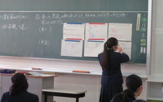 本日は、J1-Bの道徳の様子を写真にて紹介します。友情を深めるために、友情の尊さを理解し、互いに励まし合い、悩みや葛藤も経験しながら、人間関係を深めていく内容を学習しました。 グループを組み、自分たちで司会者を決め、自