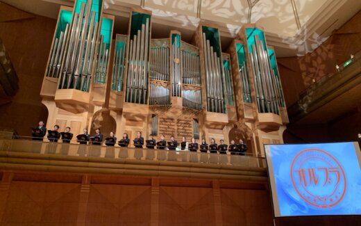 12月18日(土)、メディキット県民文化センターにて行われたオルブラに鵬翔中学校高等学校合唱部が出演をしました。 リハーサルの様子です。本番さながらの演出で、合唱部の美しい音色がホール中に響き渡り幻想的な空気に会場が包