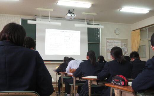J2-Aから楽しそうな声が聞こえ覗いてみると、割れないシャボン玉を作る実験をしていました。生徒たちが興味を持って前向きに学習に取り組む様子が見られました。 本日は冬期課外3日目。授業は明日の朝課外を残すのみとなりまし