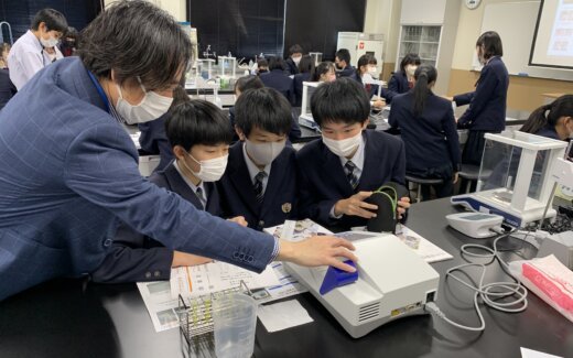 J3生は11月26日(金)に薬学部や生命医学部の見学を通し、学力や進路の意識向上を目的として九州保健福祉大学に行ってきました。 実際に実験もさせてもらいました。興味津々に取り組んでいました。見学後は、かわまち交流館へ