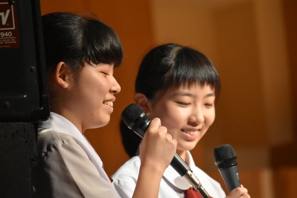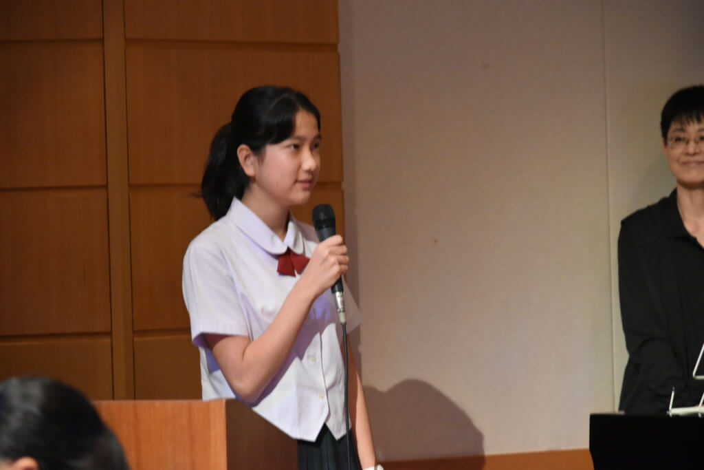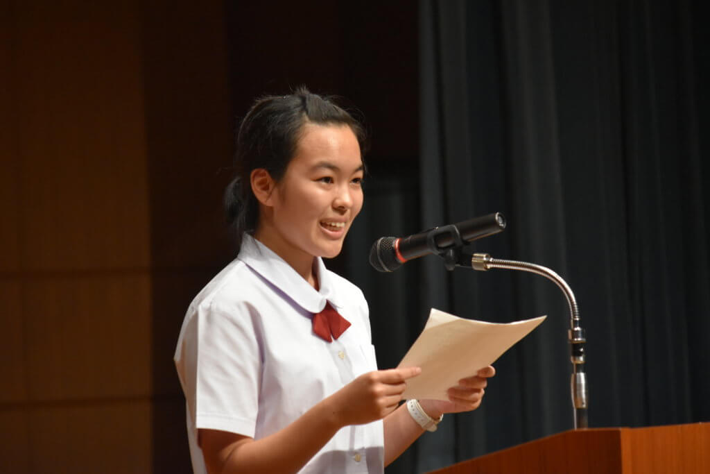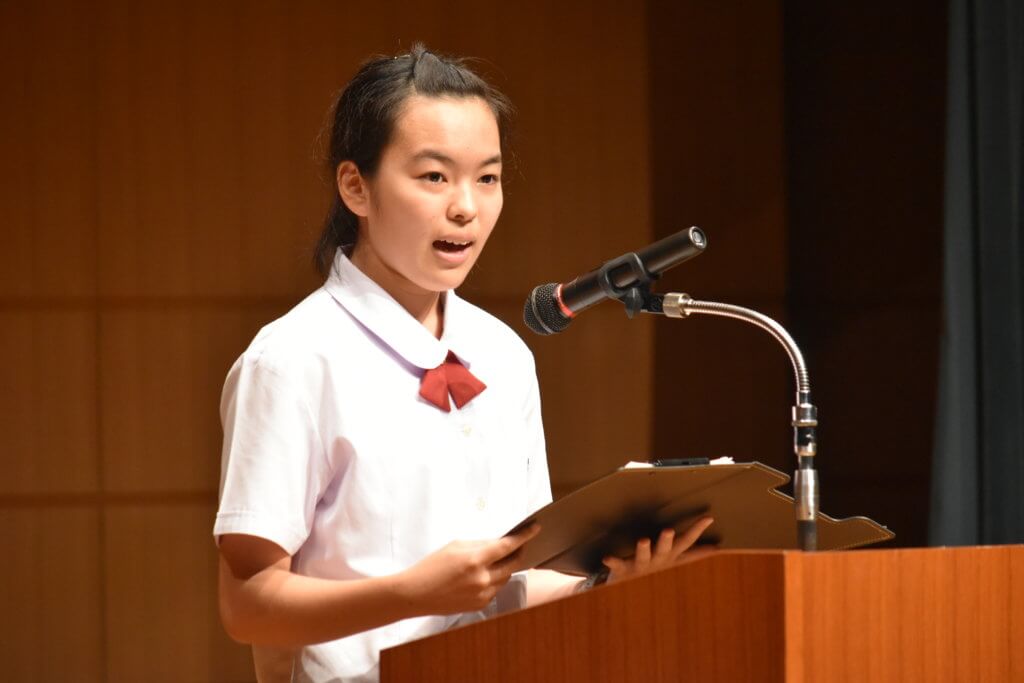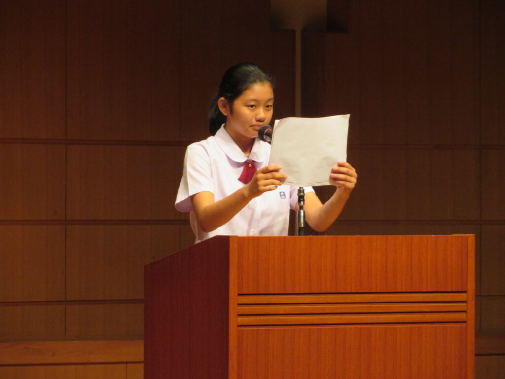 次は、英語暗唱と英語弁論。校内予選を勝ち抜いた2名が発表してくれました。
