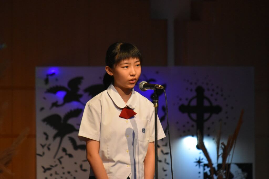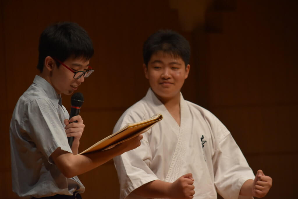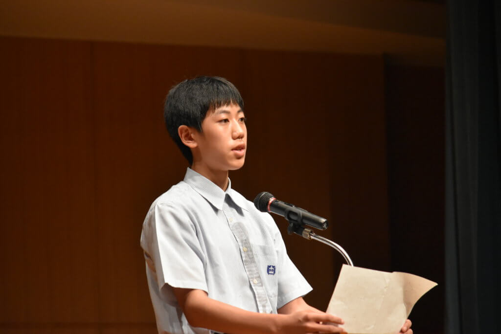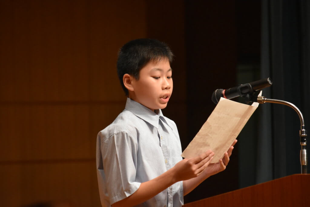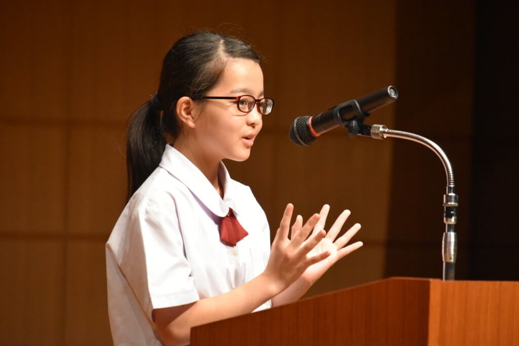 次は、英語暗唱と英語弁論。校内予選を勝ち抜いた2名が発表してくれました。