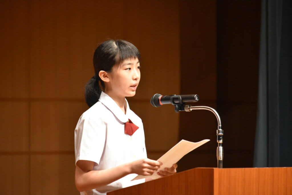 お礼の言葉を代表して、J3A 筒井詩絵さん(江平小出身)が行い、