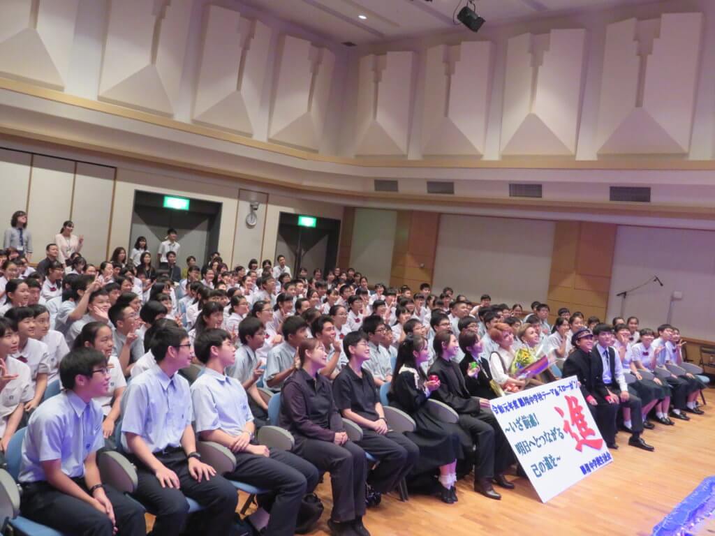 令和元年9月4日(水)、鵬翔中学校文化発表会が行われました。今年の文化発表会テーマは「進」~いざ前進!明日へとつながる己の道を~です。夏期課外の後期から、本格的に準備してきたものを各々が全力で披露してくれた1日目でした。
