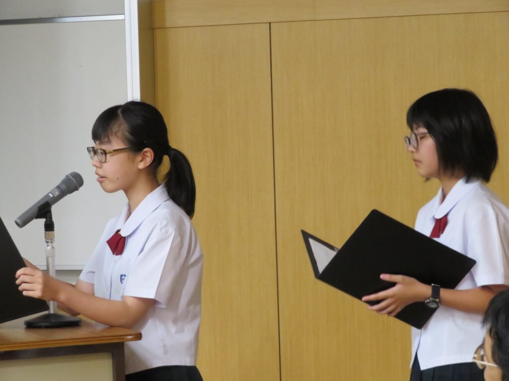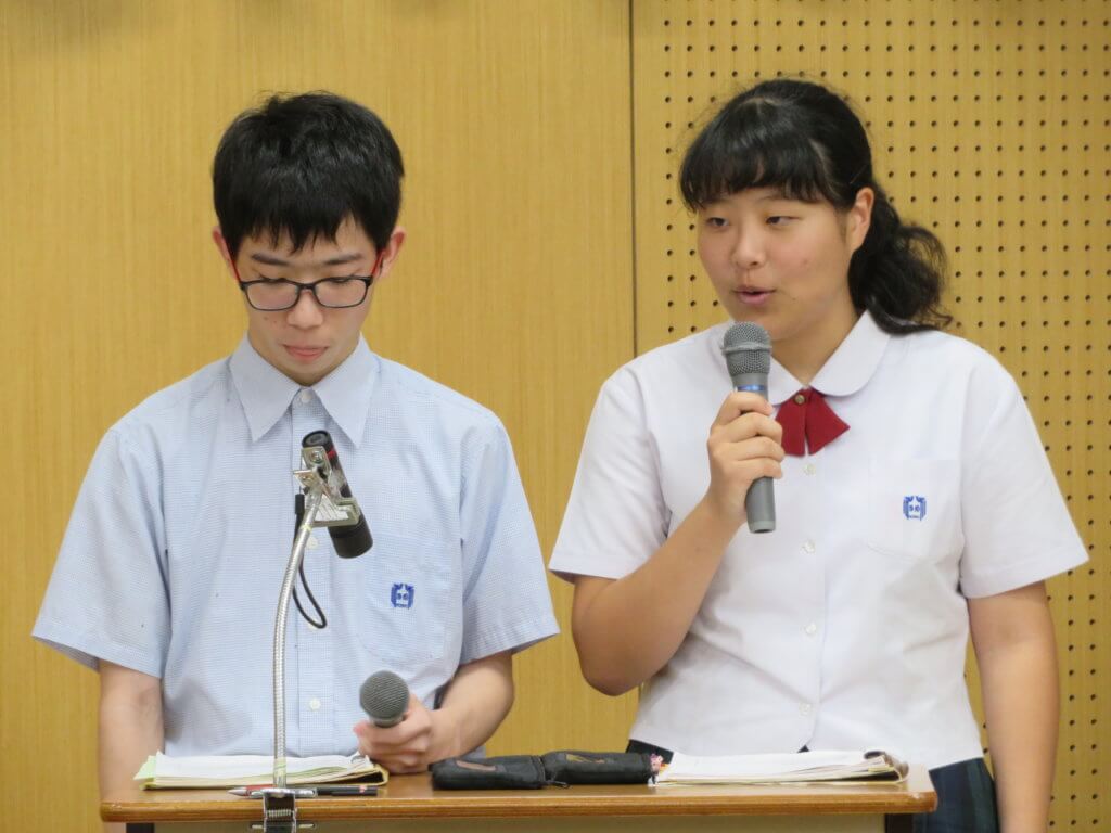 司会 J3A 里岡映菜さん J3B 前田一咲くん