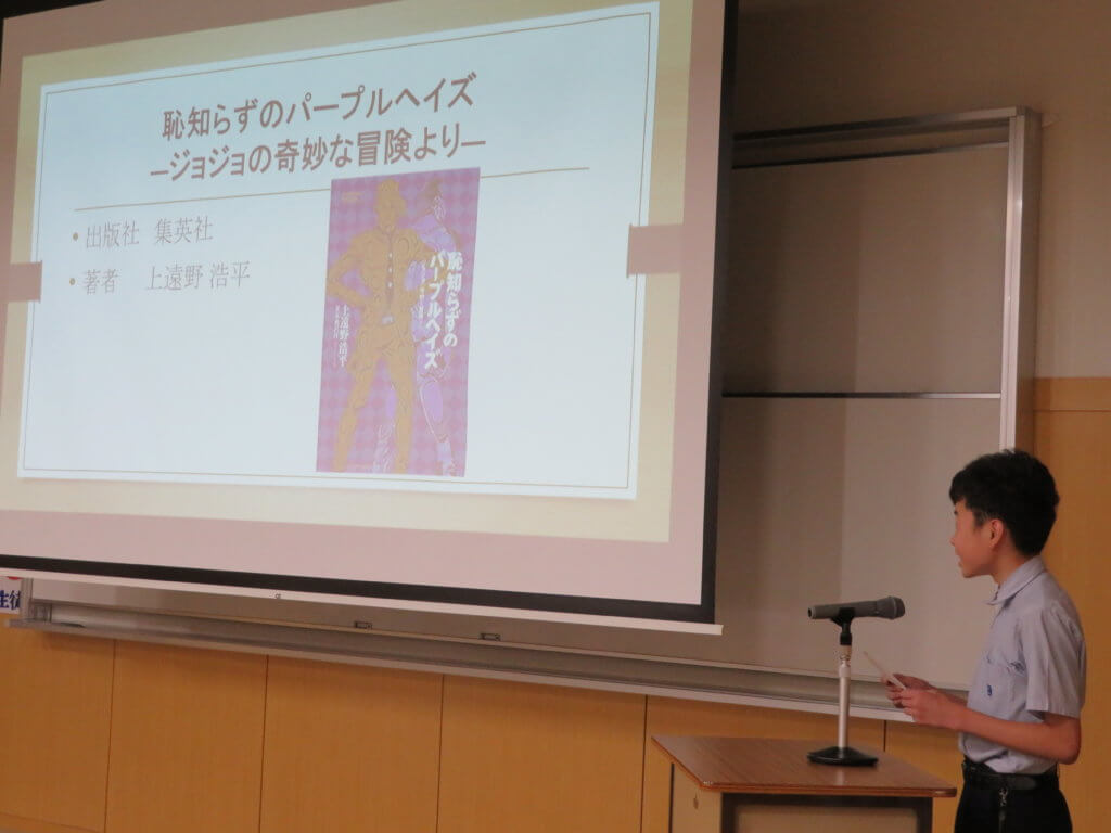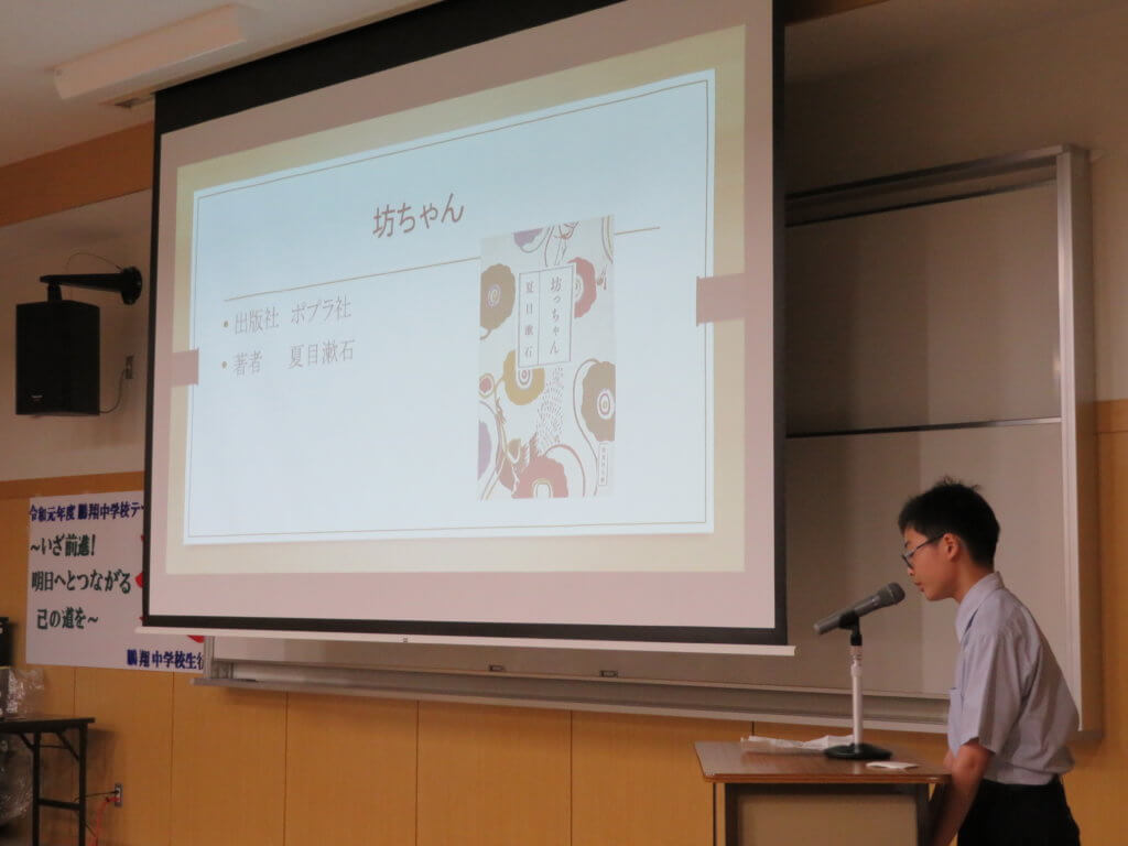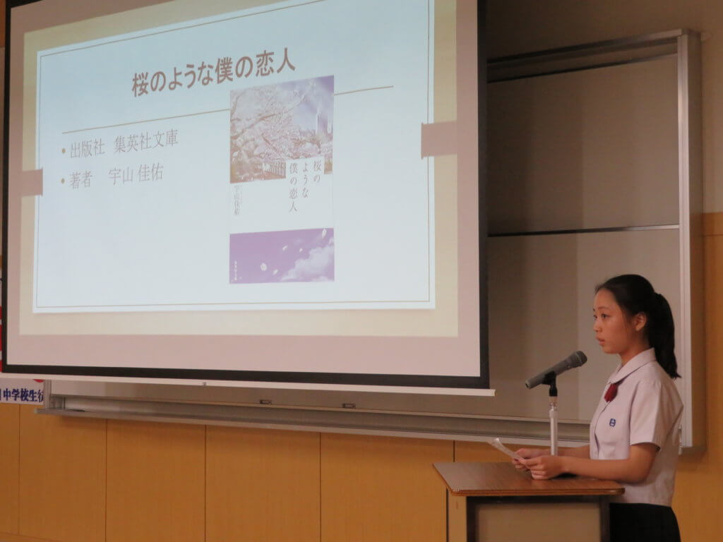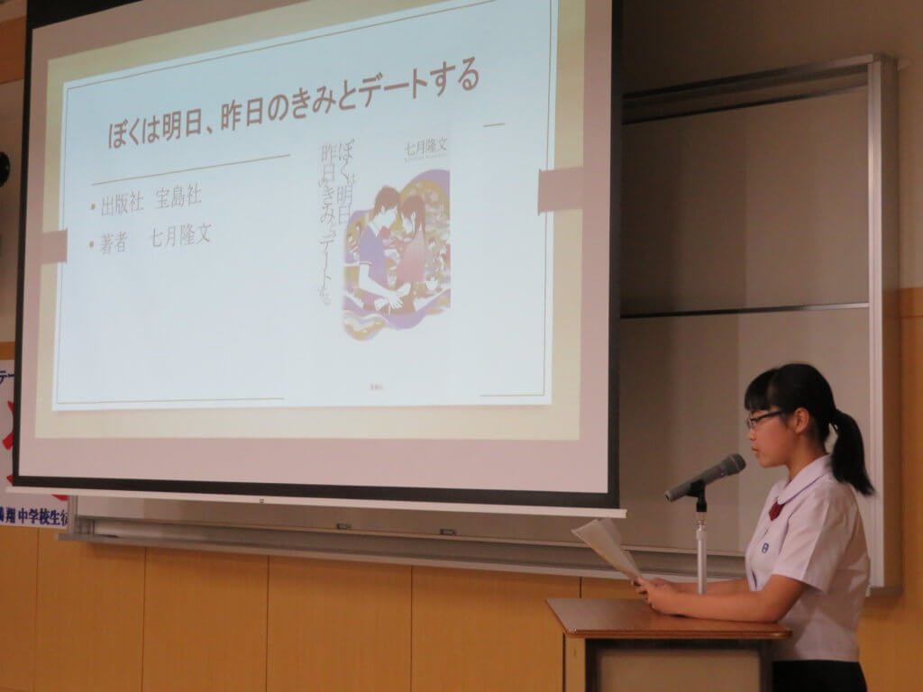 読書の時間の充実を図り、文化委員会の取り組みで、ビブリオバトルを行っています。