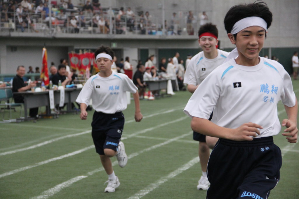 午前の部の競技は、2年生徒走や1年生の団技、3年生のリレーなど盛りだくさんでした。また、保護者の方々にも大玉ころがしや玉入れに参加していただきました。たくさんのご参加、ありがとうございました!