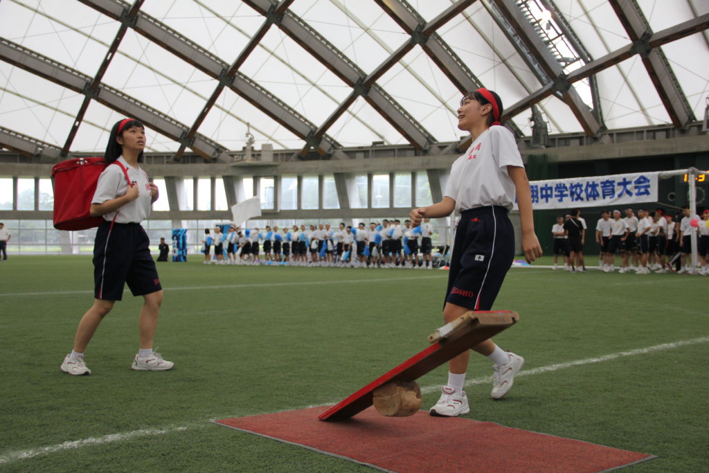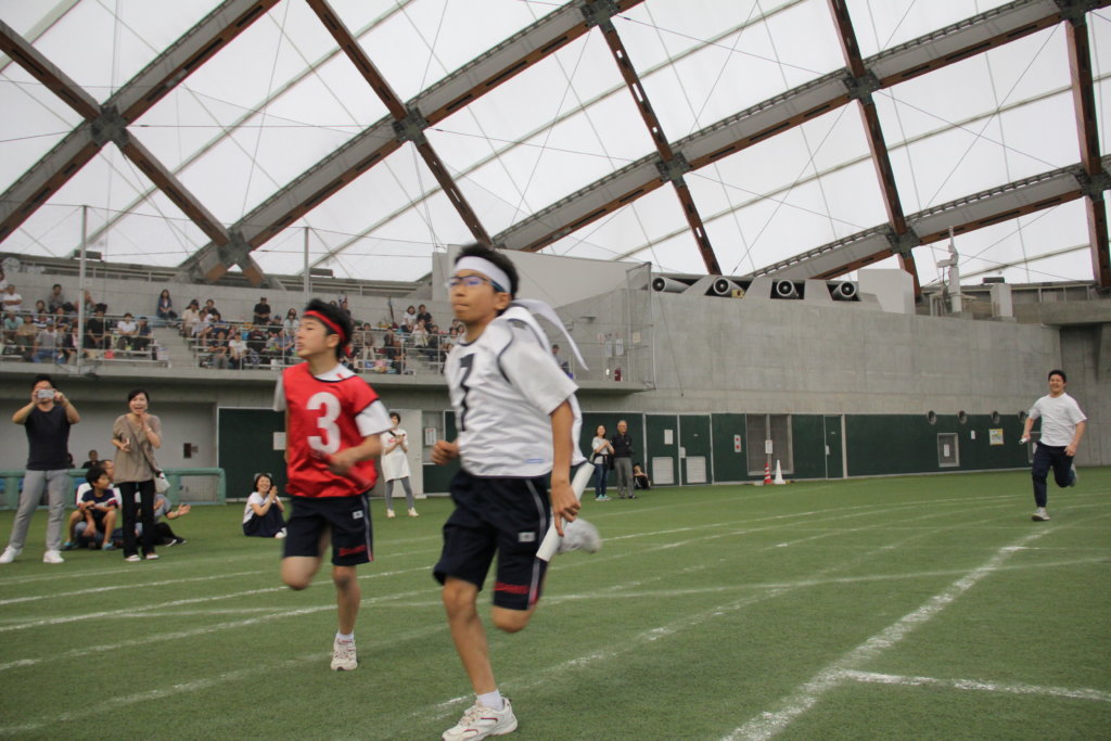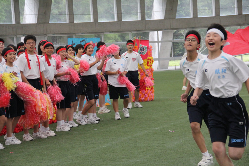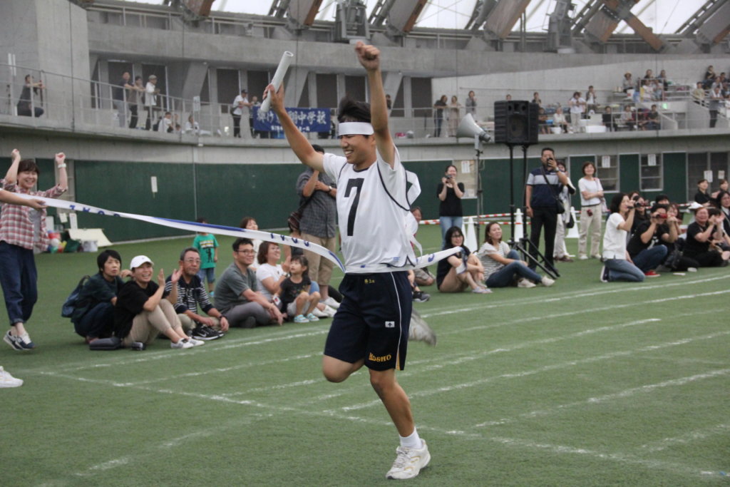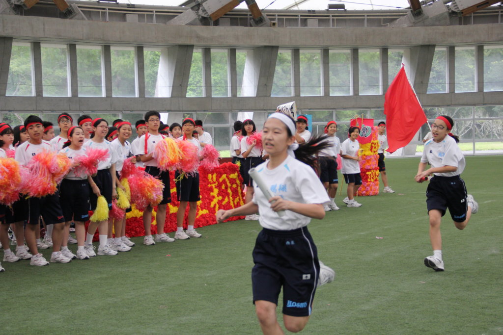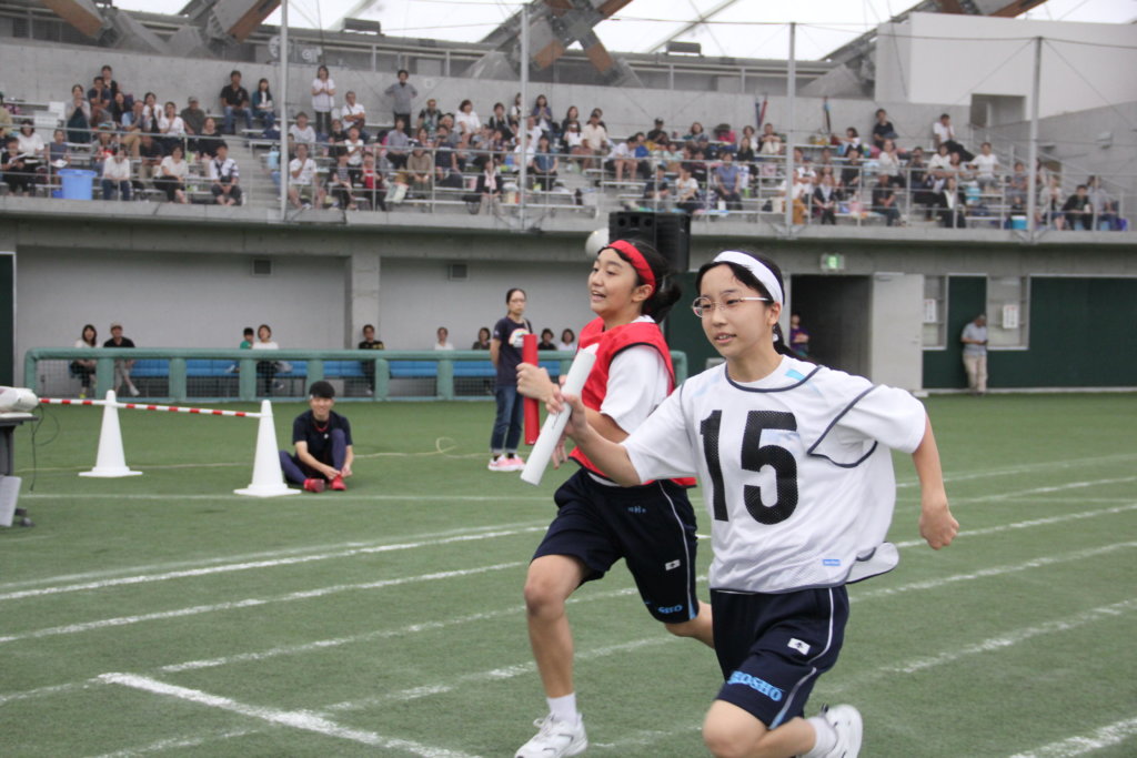 体育大会の午後の部は、1年生のリレーや2年生の団技、3年生の徒走などが行われました。