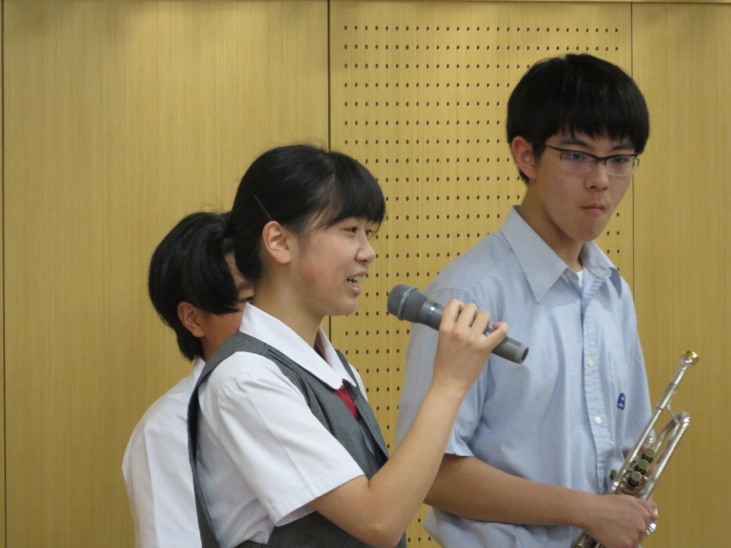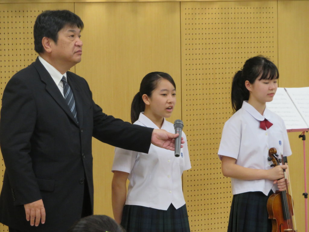1部目の後半はピアノ・ヴァイオリン演奏からスタートです。J1Aの井上詩那さんとJ1Aの小玉瑞季さんが演奏してくれました。