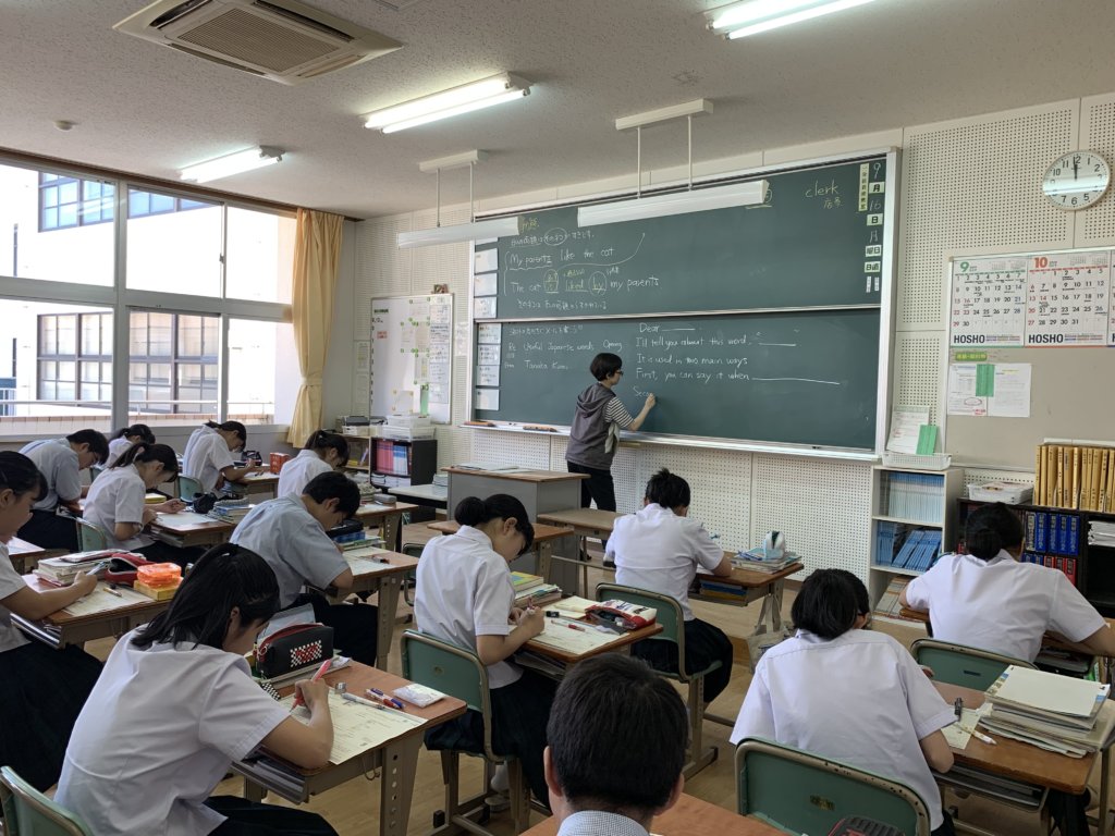 説明会後は、2部目となる公開授業見学です。中学校棟で展開されている授業風景を自由に参観していただきました。