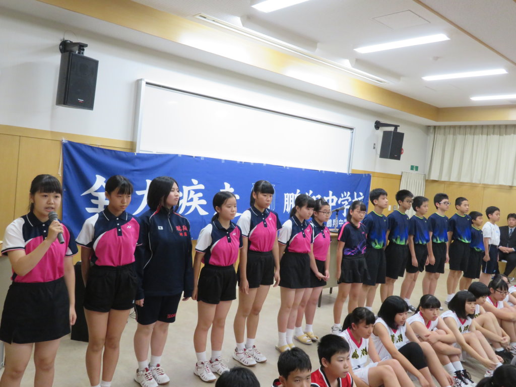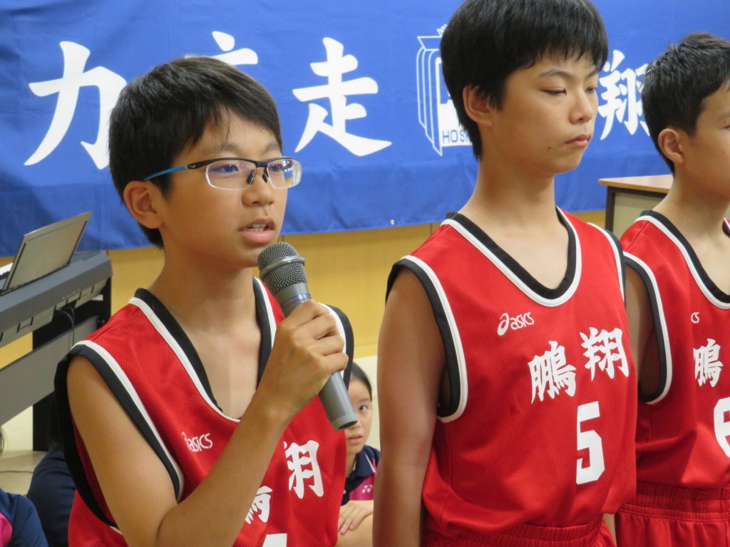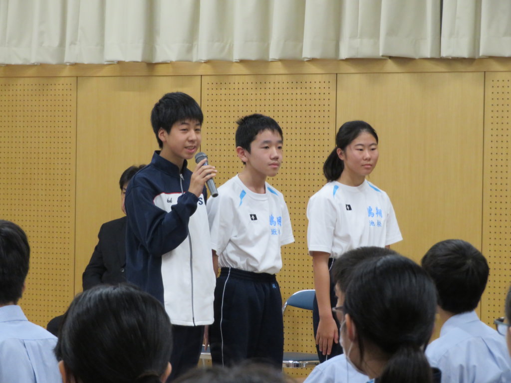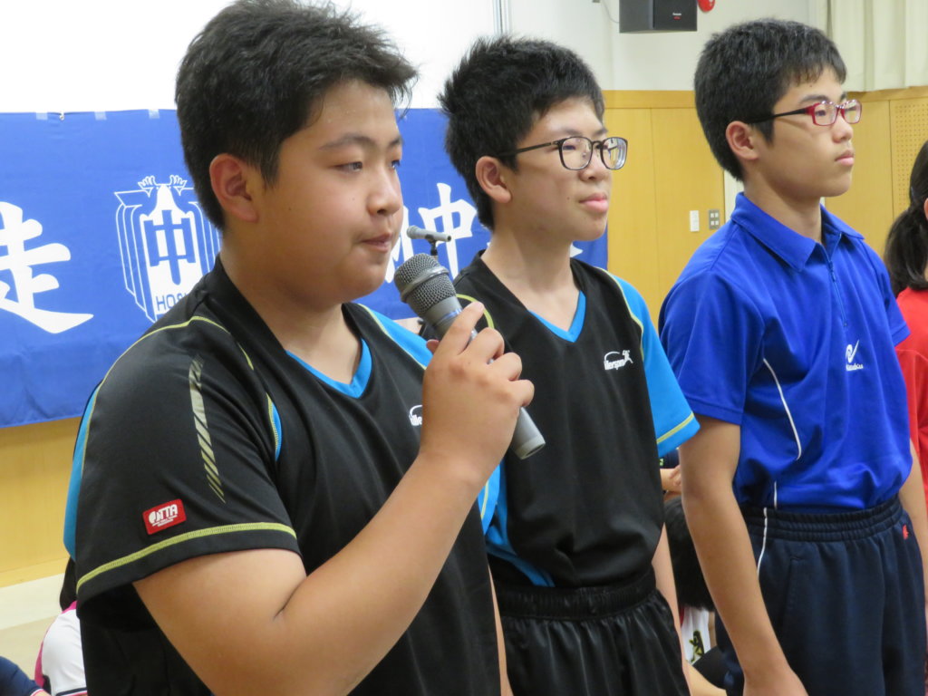 激励を受けた後、各部主将が大会への意気込みを述べました。どの部活動も、「一勝でも多く!」「自己ベストを出せるように」と気合十分です。