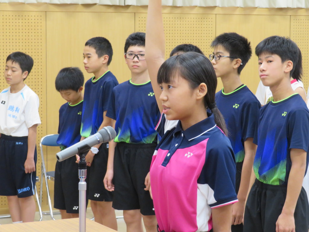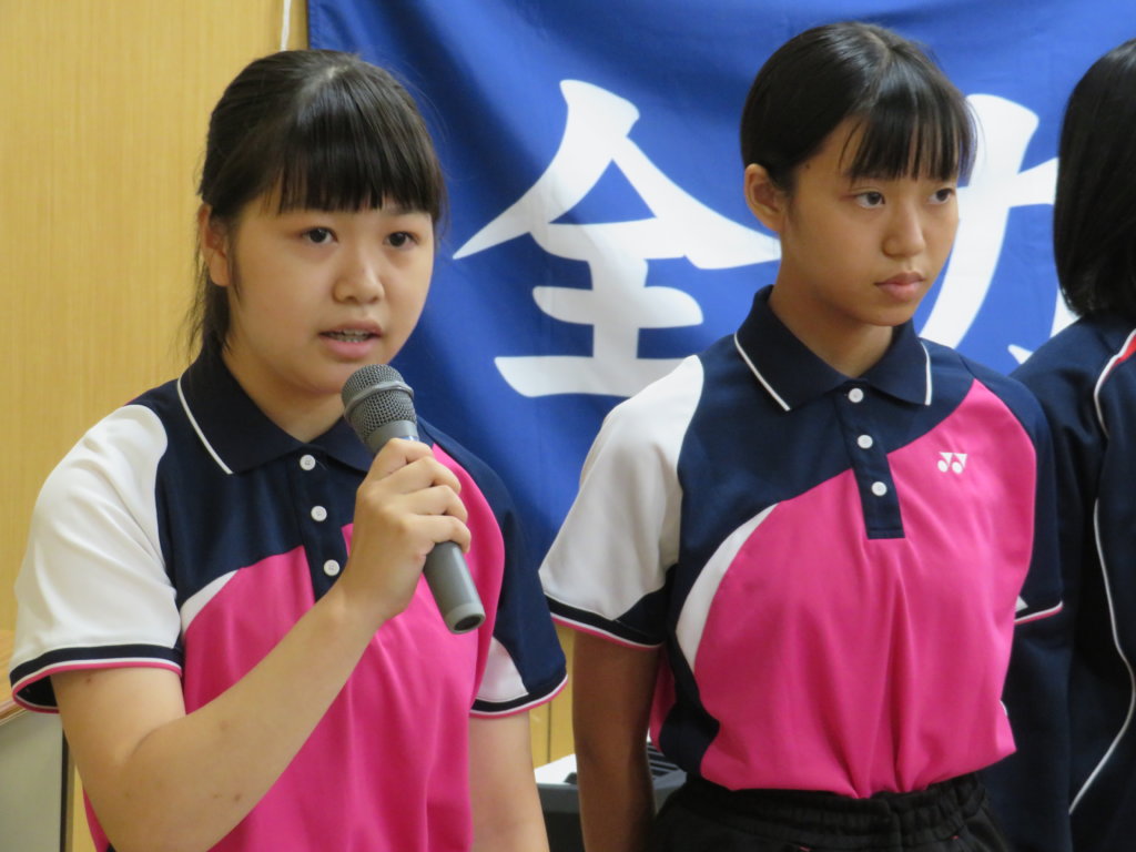 各部意気込みを述べた後は、選手を代表して、バドミントン部主将の請園美琴さんが選手宣誓を行いました。