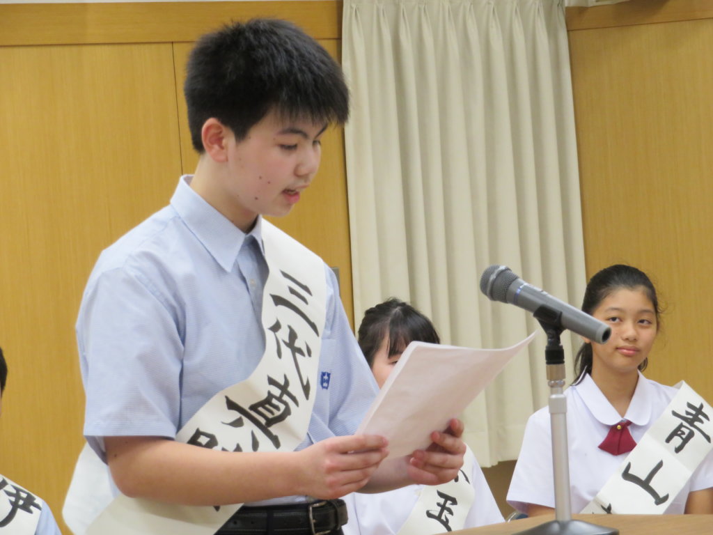 先輩にあこがれてであったり、生徒会役員のように学校のために頑張りたいであったり、今よりももっと鵬翔中学校を良い学校にしたいなどそれぞれが思い思いを語ります。