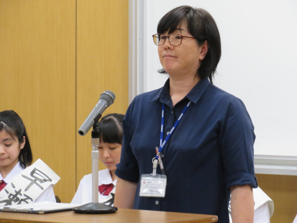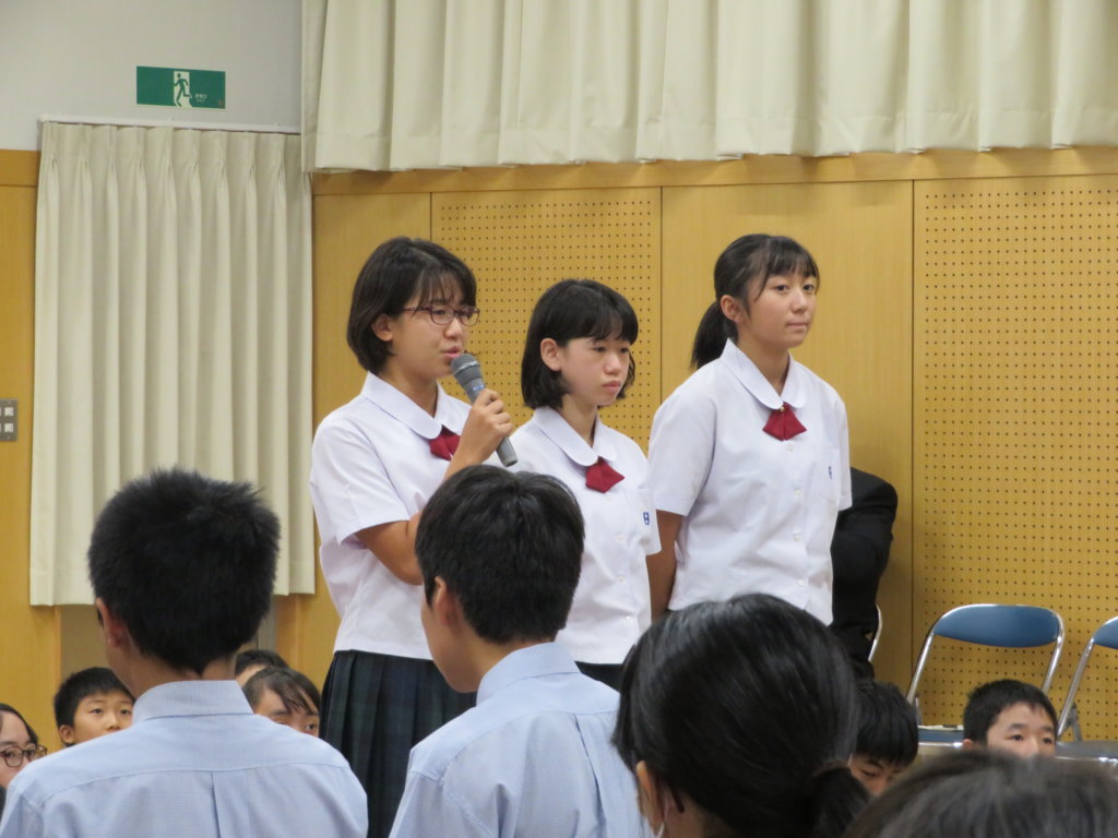 まずは、生徒会選挙に先立って、教頭先生と、生徒会長佐藤知優さんから挨拶がありました。
